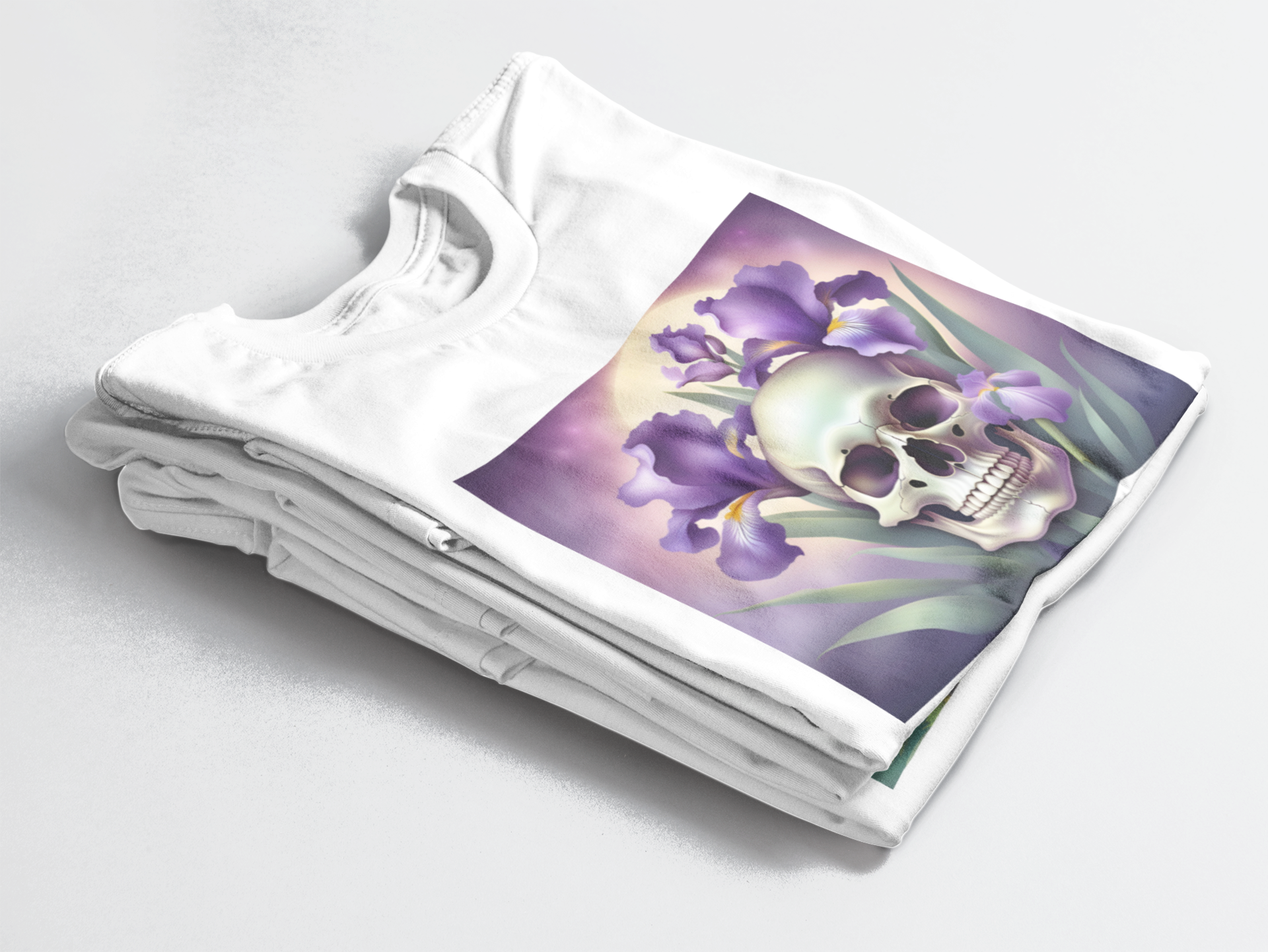 With a striking Skull & Lilacs T-Shirt, embrace the beauty in contrasts. A delicate bouquet of lilacs intertwined with a skull creates a bold yet elegant statement that’s both stylish and meaningful.